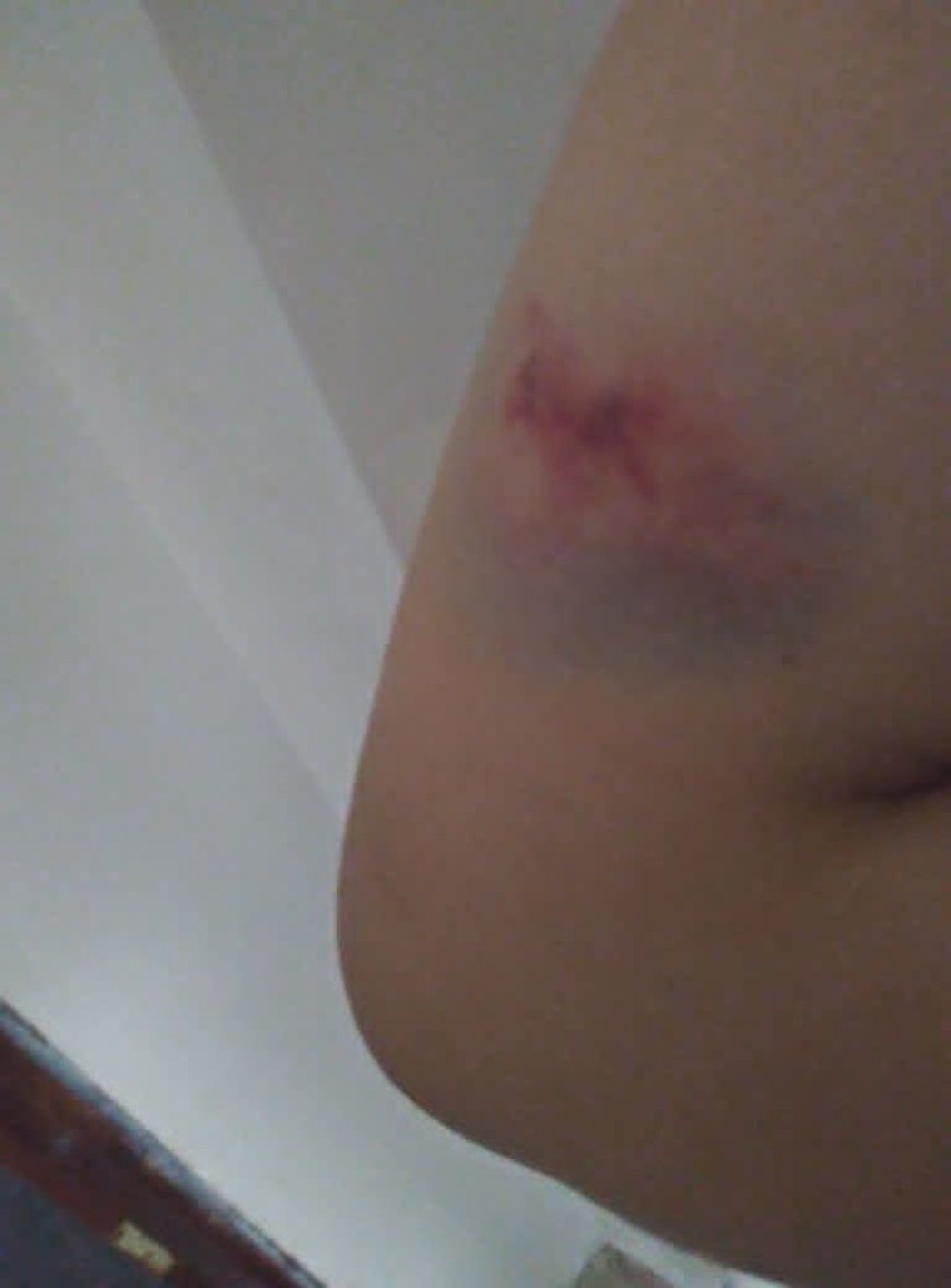 وروت المصادر أن الطالبة تشبثت بحقيبتها أثناء محاولتها عبور الشارع، غير أن المعتدية عضّتها في ساعدها في محاولة لانتزاعها، ما تسبب للطالبة بإصابة واضحة، وفق الصورة المرفقة بالحادثة.