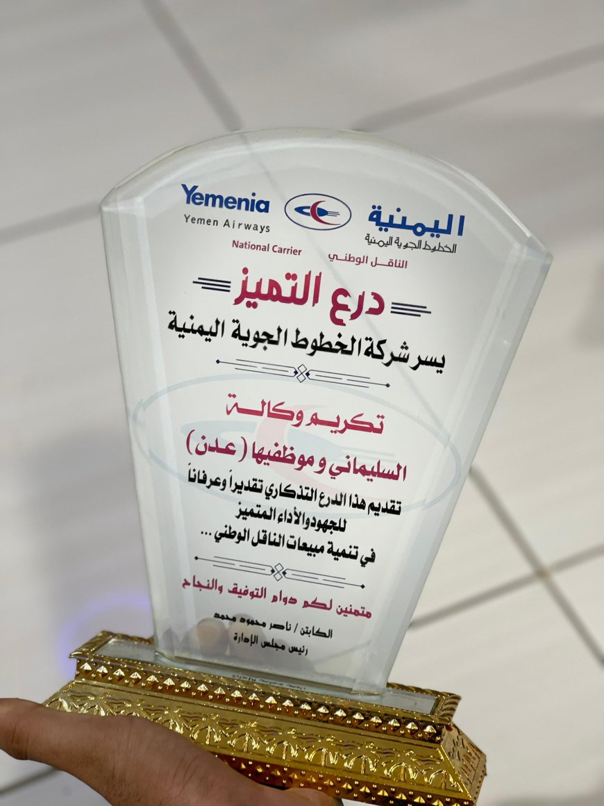 السليماني للسفريات تحلق عالياً وتحصد المركز الأول في مبيعات تذاكر اليمنية