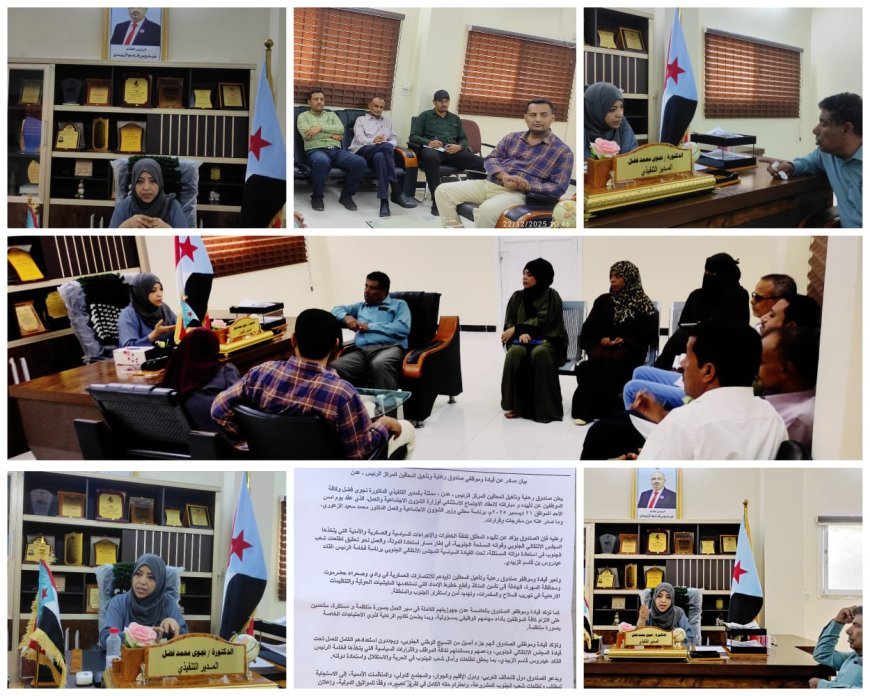 وأكد الاجتماع اصدار بيان يؤكد مباركة الانتصارات العظيمة التي تلبي طموح شعب الجنوب والمتمثل باستعادة الدولة الجنوبية الفدرالية .
