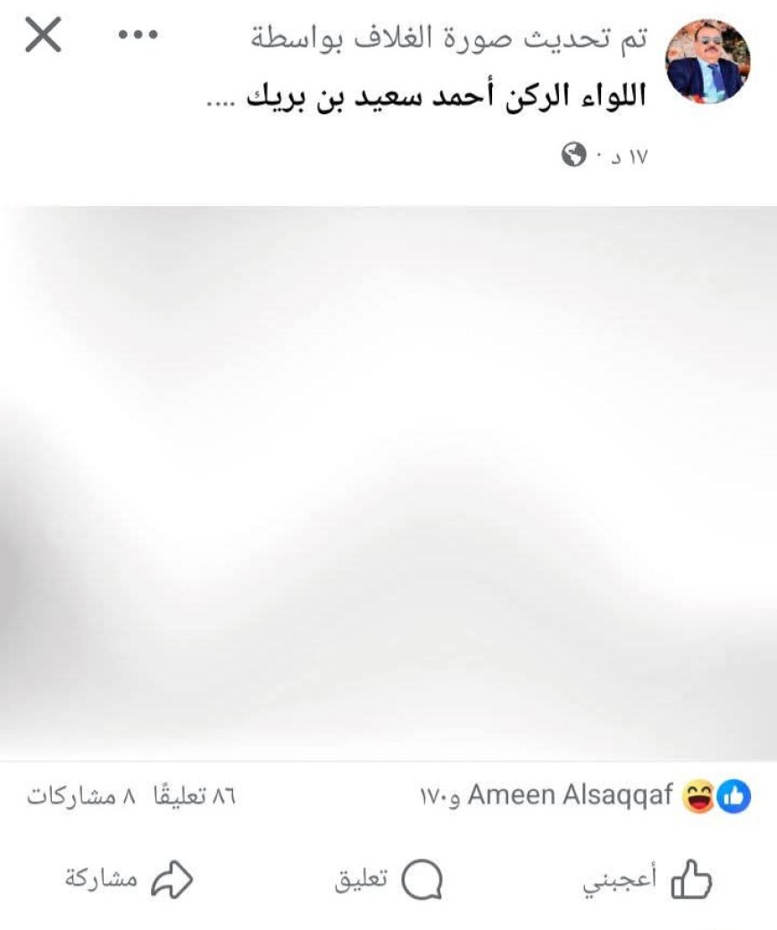 في خطوة رمزية لافتة، اتخذ القيادي في المجلس الانتقالي الجنوبي أحمد سعيد بن بريك أول قراراته عقب إعلان حل المجلس الانتقالي الجنوبي، حيث قام بتغيير صورة البروفايل في صفحته الرسمية على موقع فيسبوك إلى صورة بيضاء خالصة.
