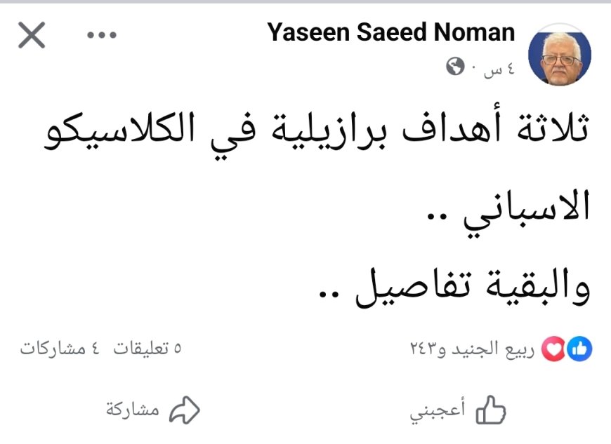 الدكتور ياسين سعيد نعمان: يخرج عن صمته..ويعلق عن لقاء الكلاسيكو بين ريال مدريد وبرشلونة