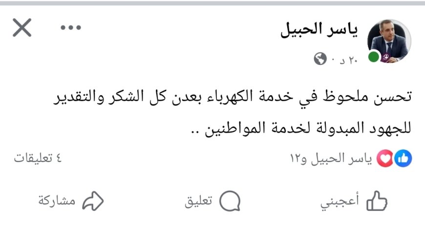 وأكد الحبيل أن هذا التطور يعكس التزام الجهات المختصة بتقديم خدمات أفضل، ويعزز من استقرار الحياة اليومية للمواطنين في العاصمة المؤقتة وعدد من المديريات التابعة لها.
