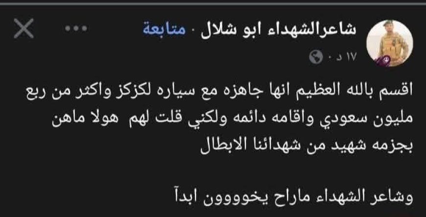 أثار منشور متداول للناشط المعروف على مواقع التواصل الاجتماعي، الملقب بـ“شاعر الشهداء أبو شلال”، تفاعلًا واسعًا، بعد كشفه عن ما وصفه بمحاولات إغراء مادي مقابل مواقف ومبادئ مرتبطة بقضية الشهداء.