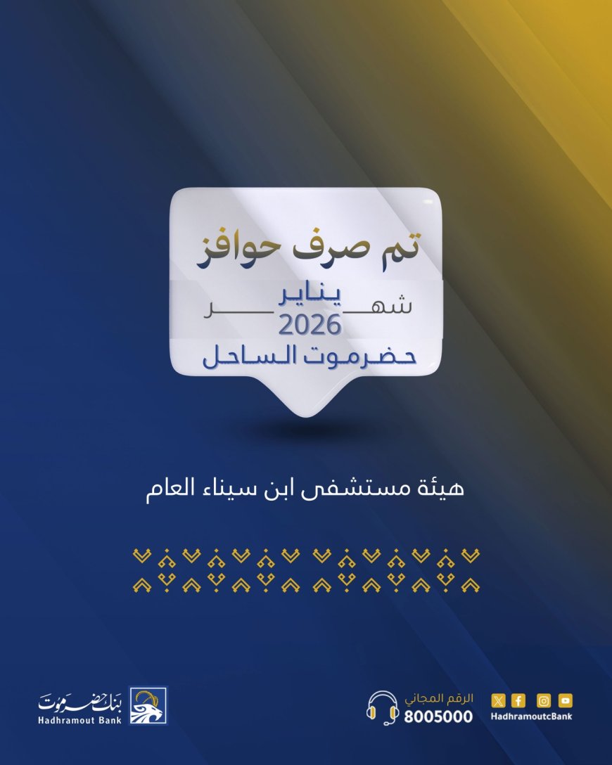 في إطار الجهود الرامية إلى تحسين آليات صرف المرتبات وتعزيز الشفافية والانضباط المالي، جرى صرف رواتب شهر يناير 2026 عبر بنك حضرموت لعدد من المرافق الحكومية في محافظتي حضرموت الساحل والمهرة.
