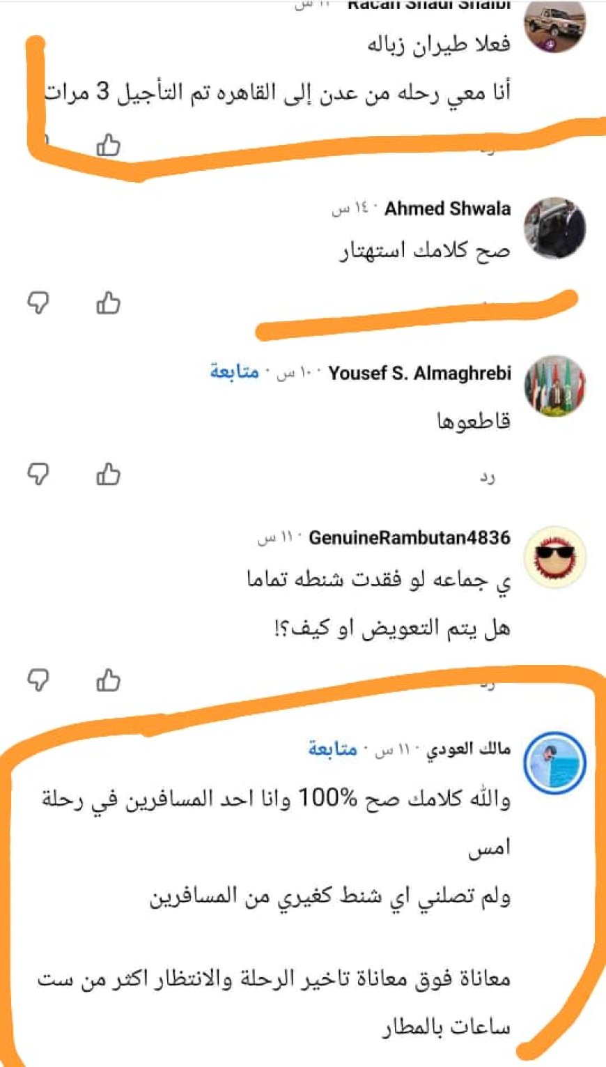 وسط دعوات لتدخل وزير النقل الجديد:شكاوى مسافرين تتهم طيران “عدن فلاي” بترحيل أمتعة الركاب لصالح الشحن (صورة)